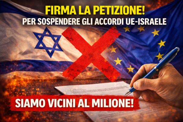Petizione UE per sospendere l’accordo con Israele: oltre 700mila firme raccolte. Firma anche tu e aiuta a raggiungere il milione necessario