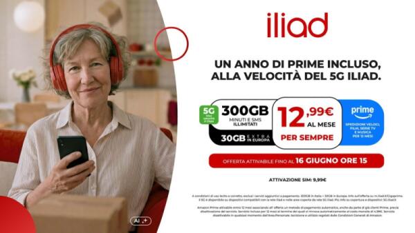 Passa a Iliad GIGA PRIME: 300GB in 5G, minuti illimitati e 12 mesi di Amazon Prime inclusi a 12,99€. Scopri i dettagli della nuova offerta e del 5G Standalone