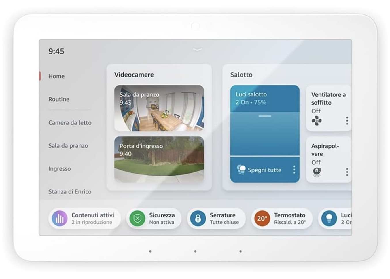 Per capirci, Echo Hub è principalmente un pannello di controllo per la Casa Intelligente con integrazione Alexa, progettato per offrire un modo ancora più semplice e intuitivo di gestire i diversi dispositivi compatibili.
