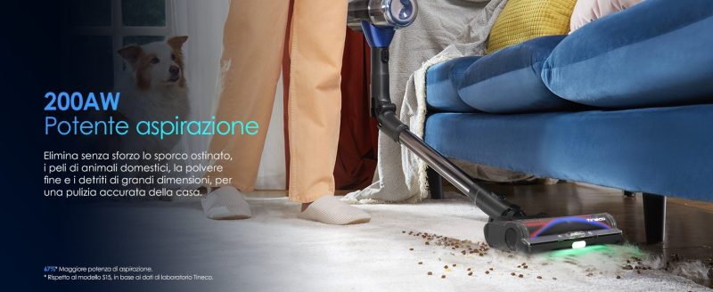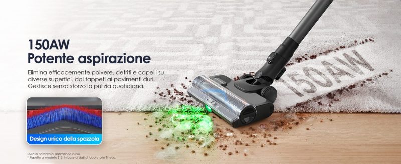 Allo stesso tempo la spazzola anti-groviglio, la luce frontale a 120° e il sistema di filtrazione a sei stadi completano un dispositivo pensato per chi cerca prestazioni solide e semplicità d’uso, anche su superfici miste.