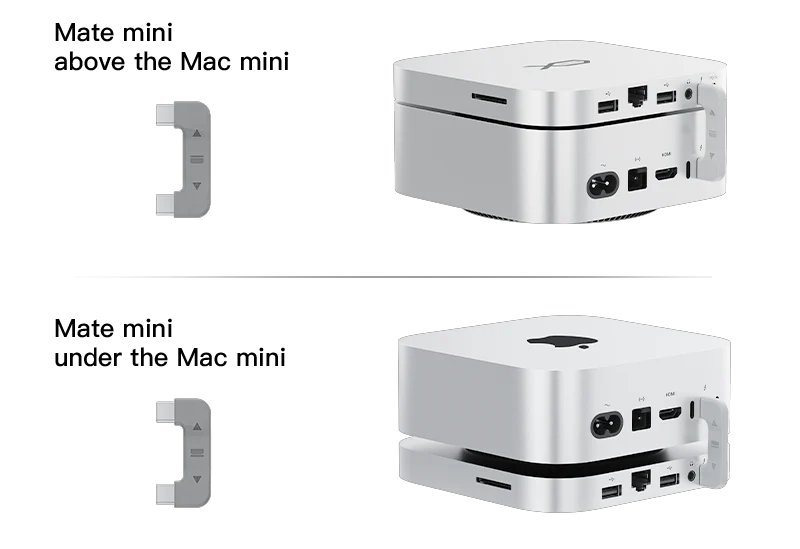 Il Beelink Mate Mini è progettato per adattarsi perfettamente al Mac Mini: può essere posizionato sopra o sotto il computer, senza occupare spazio aggiuntivo sulla scrivania.