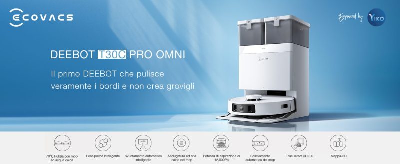Proprio in questi giorni, infatti, ECOVACS ha introdotto sul mercato italiano il nuovo DEEBOT T30C Pro OMNI, un robot aspirapolvere lavapavimenti molto interessante, che non costa troppo ma offre un'ottima potenza di aspirazione e tante funzioni innovative.