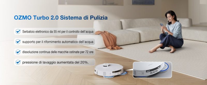 La sua stazione OMNI non è un semplice accessorio, ma il cuore della sua autonomia: svuota automaticamente la polvere e lava i panni con acqua calda a 70°C, eliminando il 99% dei batteri.