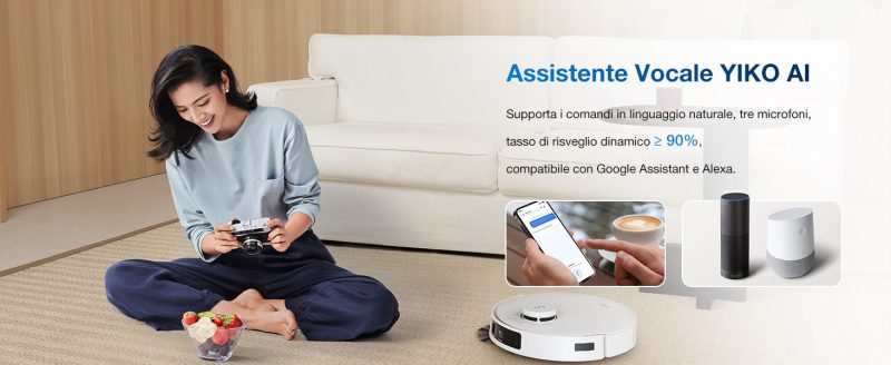 E con l'assistente vocale YIKO o il controllo tramite App, hai il pieno controllo del tuo DEEBOT T30C Pro OMNI, anche con Google Assistant e Alexa.
