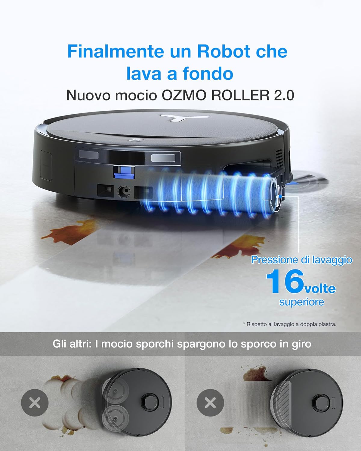 OZMO ROLLER 2.0: 3.800 Pa di pressione e 220 movimenti al minuto