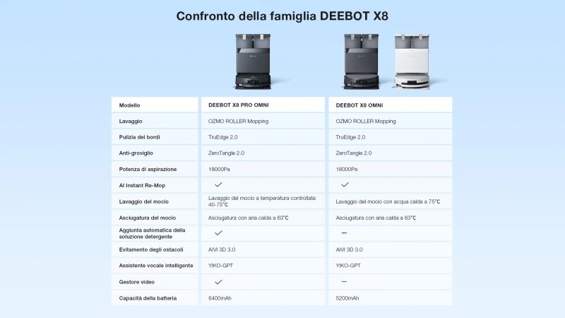 Non riesci a capire quali sono le differenze e cosa cambia tra DEEBOT X8 PRO OMNI e X8 OMNI?