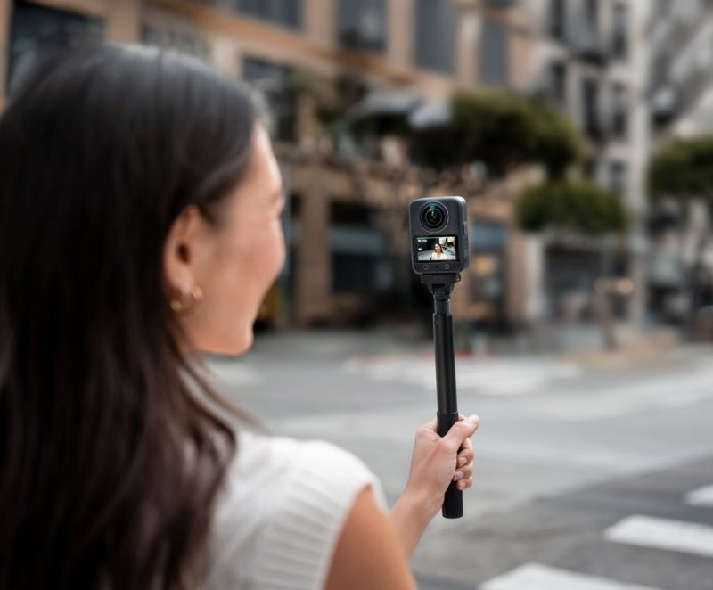 Uno degli accessori più innovativi è il manico telescopico invisibile da 1,2 m, che scompare automaticamente dalle riprese a 360° senza necessità di post-produzione.