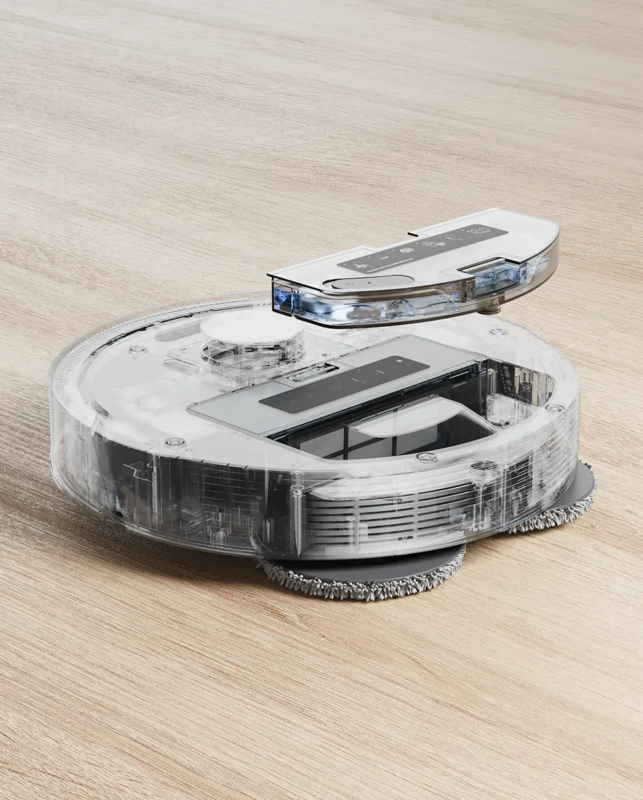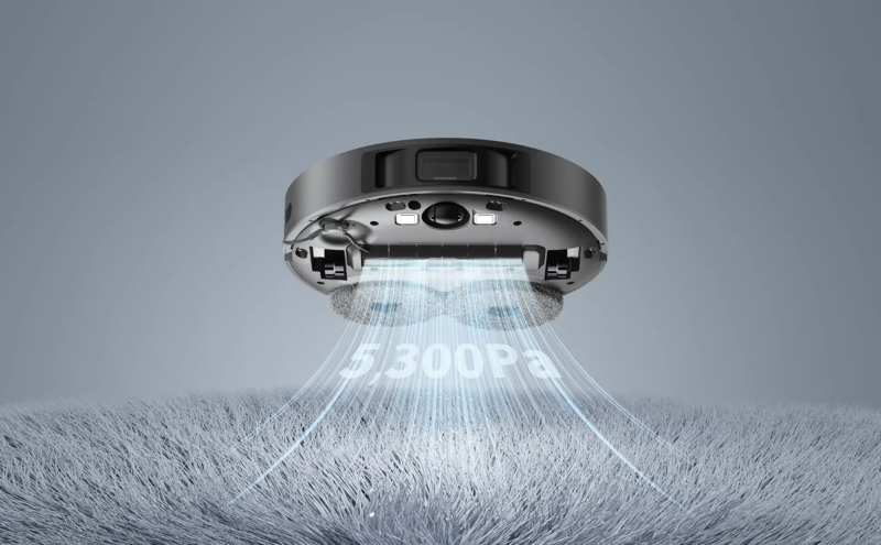 La stessa tecnologia intelligente viene applicata per riconoscere i tappeti, portando a un aumento automatico della forza di aspirazione e rialzando i due panni, per evitare di bagnare o danneggiare il tappeto e per non trascinare i panni sporchi fino alla base di ricarica.