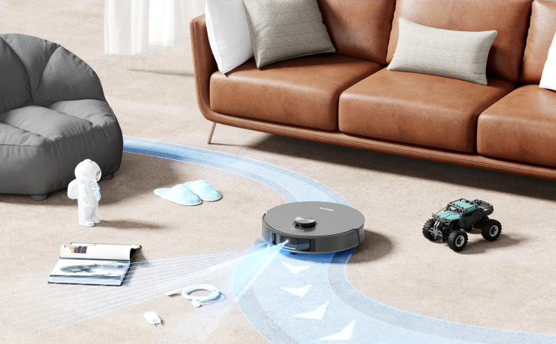 Oltre al sistema LiDAR per la navigazione, è infatti dotato di un sistema a luce strutturata 3D che gli permette di identificare gli oggetti sul pavimento ed evitarli in maniera molto accurata, senza che la pulizia ne debba risentire o che gli ostacoli provochino un blocco del robot.