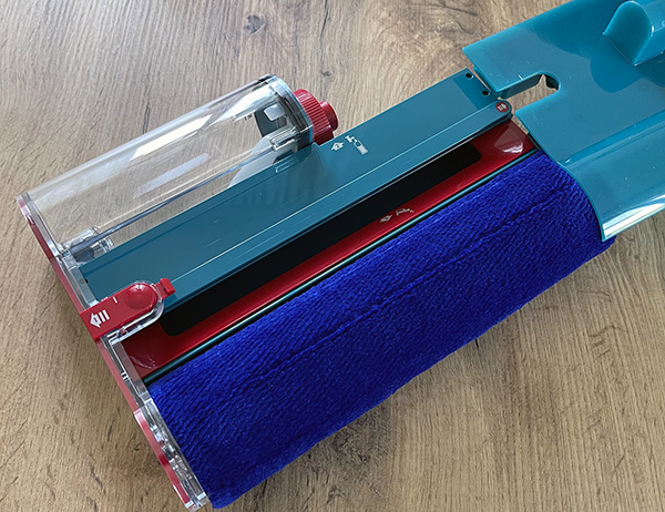 La manutenzione avviene in modo molto semplice: è sufficiente intervenire sul pulsante rosso per poter sfilare l'intera struttura, esponendo così la spazzola di lavaggio, il serbatoio dell'acqua sporca e quello dell'acqua di lavaggio.