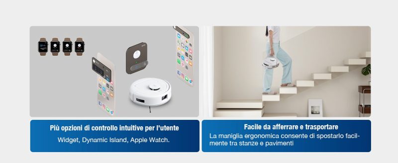 - App: ECOVACS HOME, compatibilità con Apple Watch e Dynamic Island