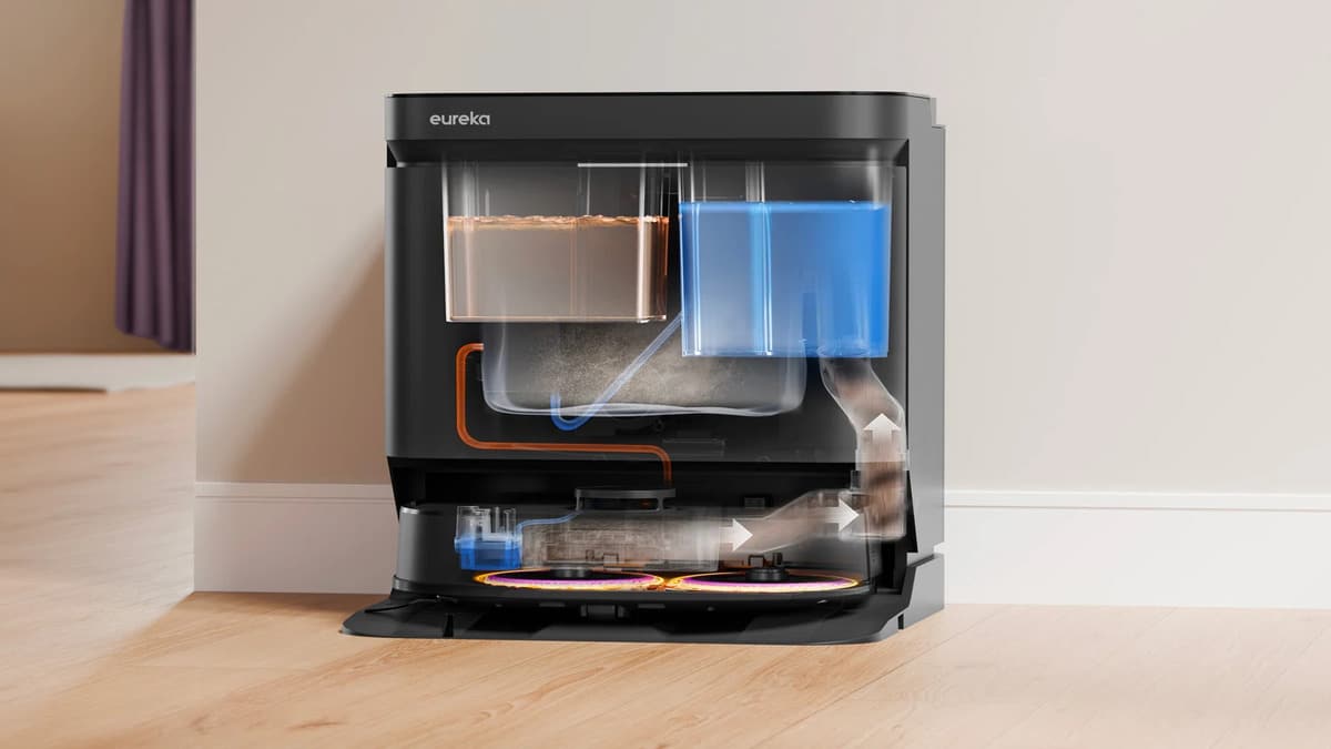 "Dopo ogni pulizia del mocio del robot un raschietto incorporato nella stazione base rimuove i residui dal vassoio di pulizia e li spinge nella zona di raccolta", spiega Eureka.