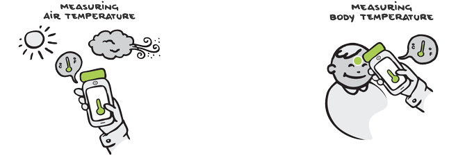 Con Thermometer puoi misurare la tua temperatura corporea oppure la temperatura di qualsiasi oggetto!