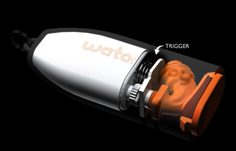 Ovviamente non entra in azione semplicemente a contatto co un pò d'acqua, perché il trigger viene azionato grazie alla pressione dell'acqua che si ha una volta che Waterbuoy e gli oggetti ad esso collegati raggiungono una determinata profondità!