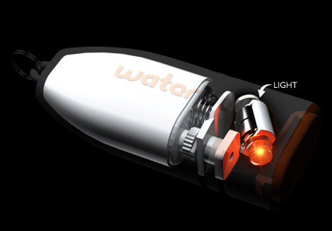 Si chiama Waterbuoy, è un portachiavi con un dispositivo tecnologico integrato. Questo una volta caduto in acqua attiva il gonfiaggio di un palloncino che sfruttando il Principio di Archimede porta a galla le tue chiavi ed emettendo una luce lampeggiante per indicare il punto esatto dove si trovano anche di notte.
