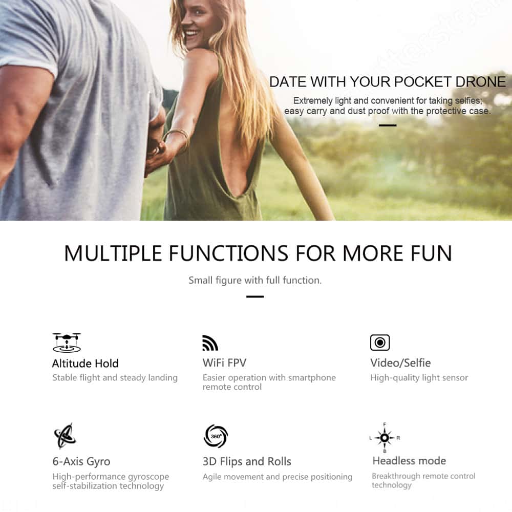 Perfetto come regalo di Natale, JJRC H37 è un piccolo drone per selfie che si ripiega e sta comodamente in tasca o in una piccola borsetta.