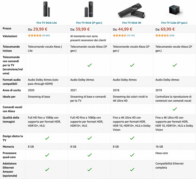 Per concludere, ecco un bel confronto tra tutte le chiavette smart di Amazon: