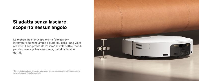 Dotati del sistema di navigazione intelligente FlexScope™ e di un sensore DToF retrattile, garantiscono una mappatura efficiente dell'intera casa e movimenti agili negli spazi ristretti.