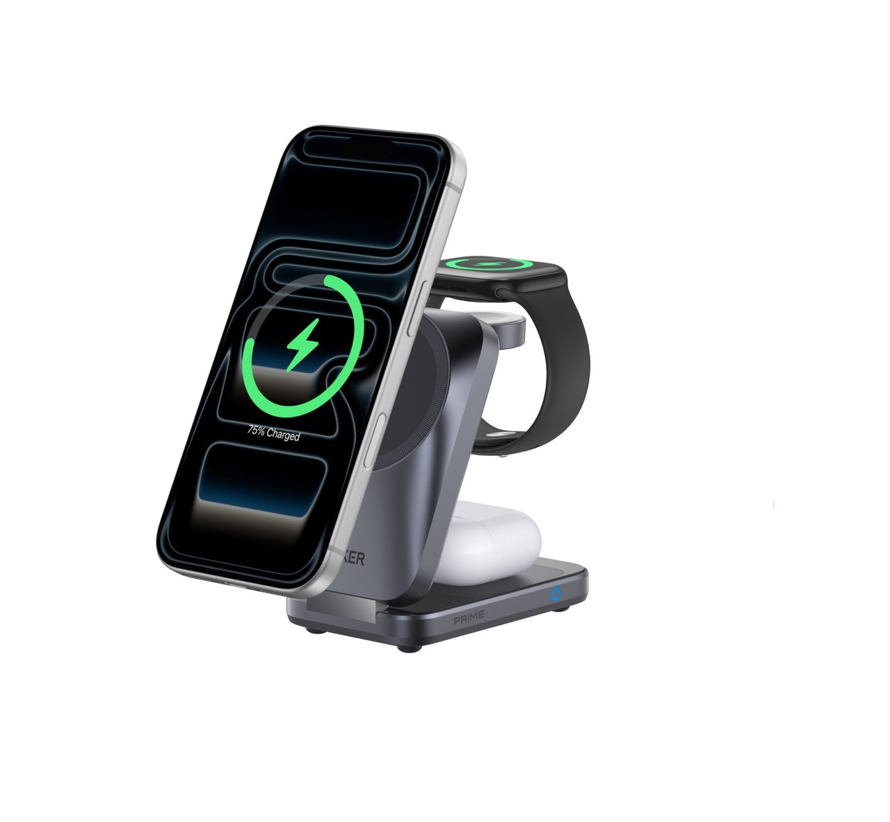 Anker Prime Wireless Charging Station (3-in-1): design pieghevole e tascabile, ricarica wireless Qi2 fino a 25W per iPhone e sistema di raffreddamento AirCool con tecnologia Airflow. In arrivo nel Q1 2026.