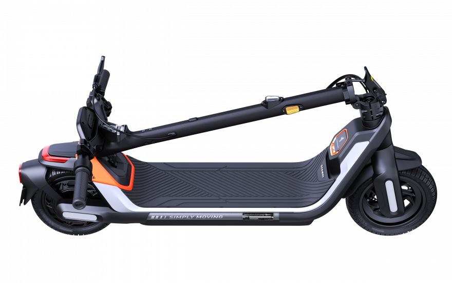 Sul parafango posteriore è integrato un porta-targa assicurativo e il meccanismo di piegatura in due fasi permette inoltre di riporli facilmente in auto, sui mezzi pubblici o di trasportarli con una sola mano.
