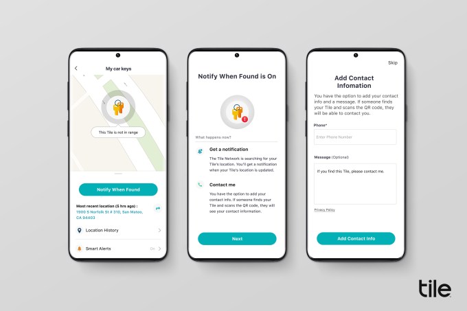 L’applicazione Tile si aggiorna in maniera analoga ottenendo il servizio Lost and Found: chiunque troverà un dispositivo Tile e annessi dispositivi potrà scansionare un codice QR per ottenere le informazioni di contatto del proprietario e organizzarsi di conseguenza per la restituzione.