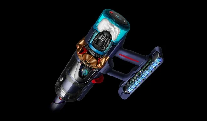 Il nuovo motore Hyperdymium è stato costruito attorno a un albero più corto, ha una forma compatta ed è più piccolo del predecessore ma anche più veloce: addirittura fino a 135.000 giri al minuto, 10.000 in più del Dyson V15 Detect.