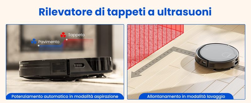 Inoltre, X1 e V10 si differenziano da altri robot grazie al sensore identificatore di tappeti, che aumenta automaticamente la potenza di aspirazione per una pulizia più profonda.