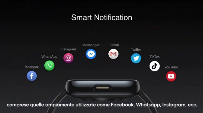 Per quanto riguarda la gestione delle notifiche, Realme Watch mostra quelle provenienti da Facebook, WhatsApp, Instagram, Gmail e altri canali social.