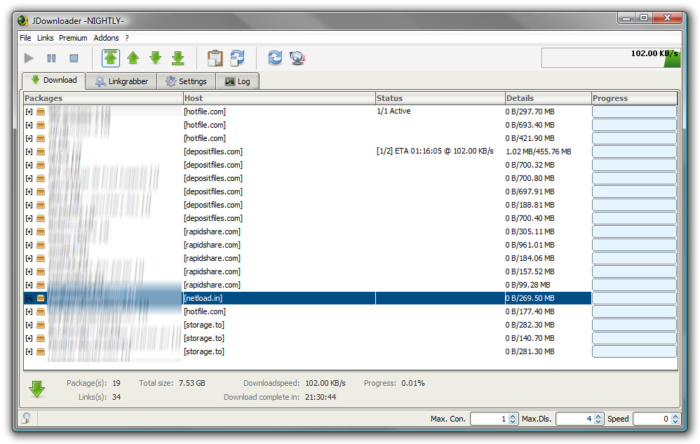 Il vantaggio di JDownloader rispetto alla moltitudine di altri download manager come per esempio “Download Accelerator Plus” e “Internet Download Manager” sta proprio nella possibilità di poter sfruttare quasi senza limiti e con tutta facilità i portali di condivisione file. Se accoppiate un account AllDebrid a JDownloader, ad esempio, potrete scaricare gratuitamente e come utenti premium da qualsiasi sito di file hosting, senza grosse difficoltà.