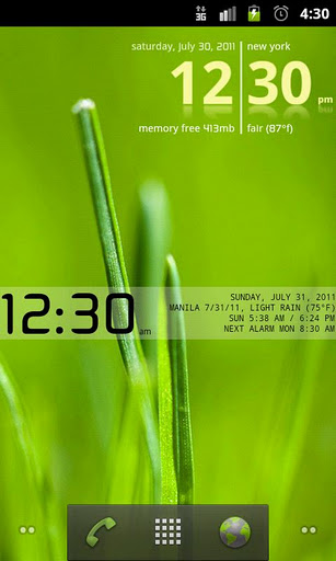 Caratteristica di questo widget è l'insieme di informazioni che fornisce, oltre all'orologio digitate avremo a disposizione e immediatamente visibili di fianco all'orario lo stato attuale della batteria, l'operatore mobile utilizzato, il segnale della connessione wifi, la sveglia programmata, la località in cui ci troviamo e il meteo in tempo reale con la temperatura.