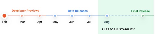 In particolare Google ha previsto l'uscita di 3 developer preview e 4 beta prima del rilascio finale.