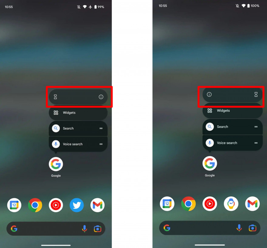 Google non ha ancora deciso la soluzione ottimale del menu rapido di un'app nel Pixel Launcher. Dopo aver cambiato la disposizione delle icone Info e Pausa, ora ha deciso di separarle su un menu che comprende anche Widget. Sotto a destra, la soluzione adottata nella seconda beta di Android 14, mentre a sinistra vedete la prima beta.