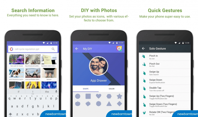 Solo Launcher è dedicato agli utenti che vogliono farsi i temi in autonomia. Permette infatti di cambiare e personalizzare tema, sfondo, colori, font e tutto il resto. E' dedicato agli utenti più esigenti, che vogliono aviere pieno controllo grafico del proprio Android.Non mancano tante gesture per navigare velocemente nell'interfaccia. Sulla parte destra c'è una pagina per le news e la ricerca universale, utile per trovare qualsiasi cosa velocemente.