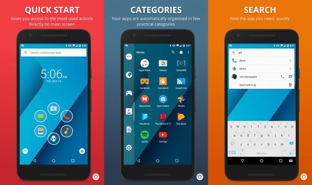 Action Launcher è un altro dei migliori launcher per Android, con alcune funzionalità uniche. La home, ad esempio, può cambiare colore (barra di ricerca, cartelle..) in base al colore dello sfondo, la funzione “Shutters” ti permette di vedere un widget facendo uno swipe sopra ad un'app, “Covers” trasforma le icone delle app in cartelle. Insomma, Action Launcher è molto potente. Da provare.