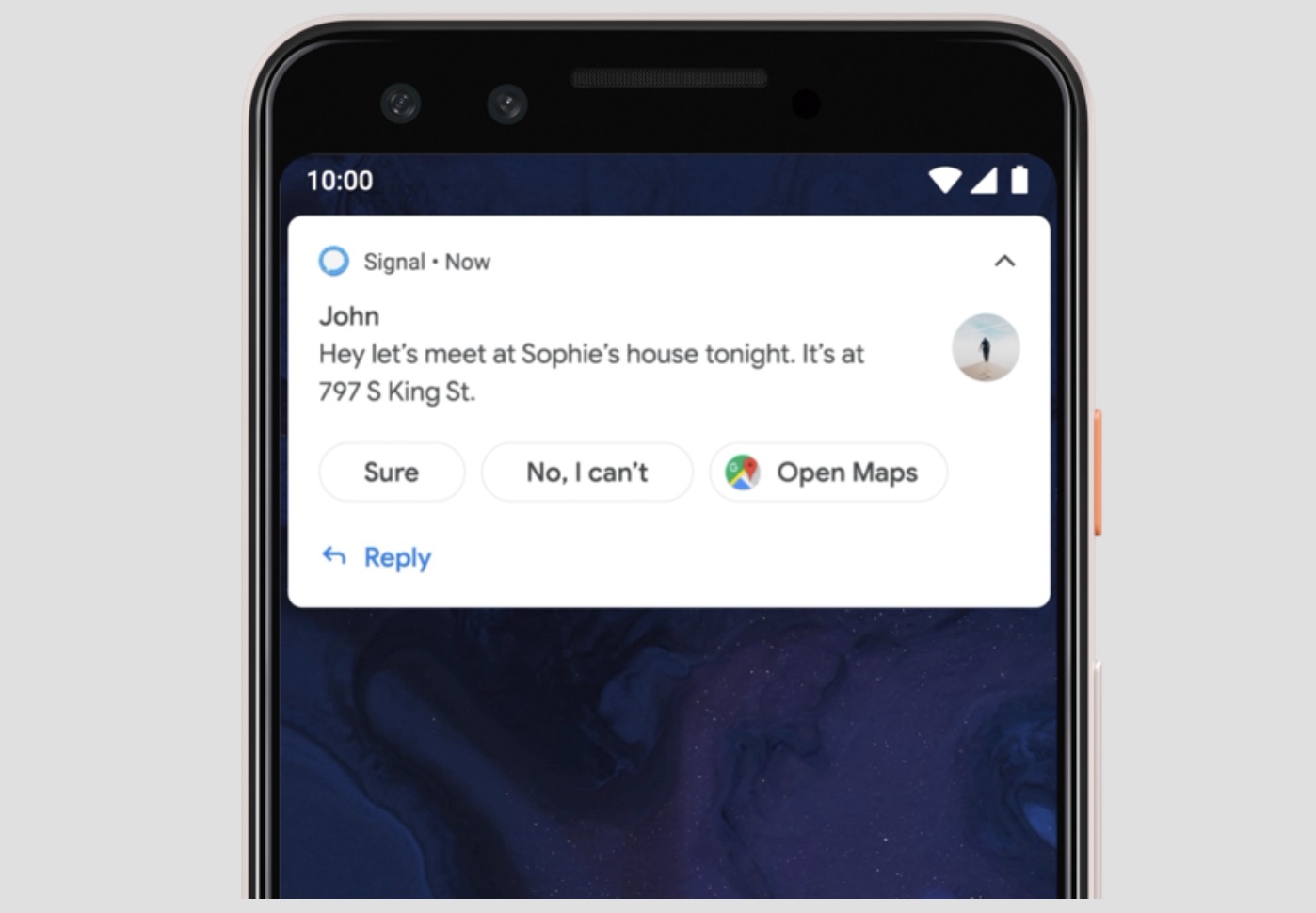 Le “risposte intelligenti” saranno disponibili su tutte le applicazioni di messaggistica in Android 10 Q