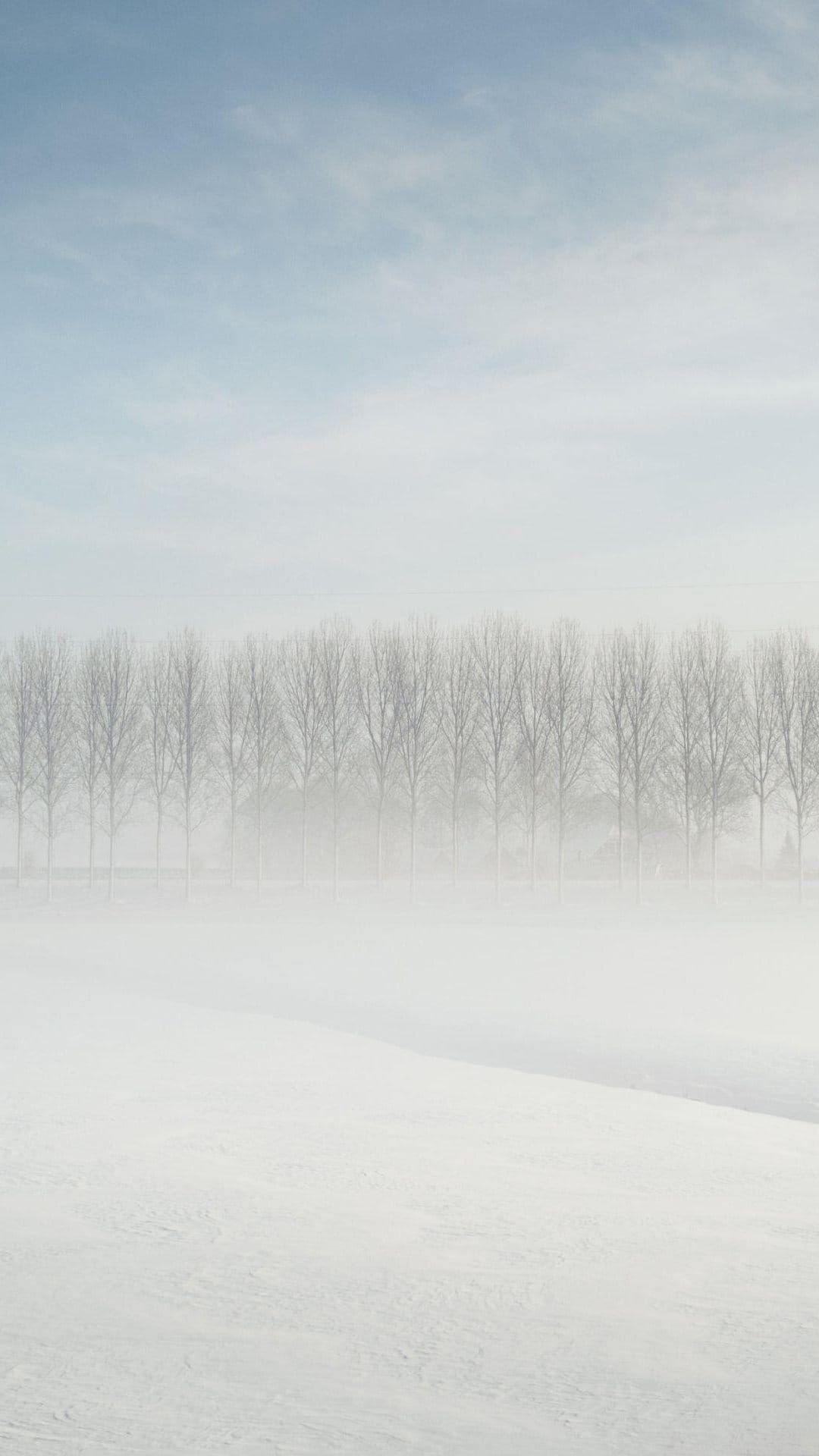 Android Wallpaper: Foggy Forest Distance Snow