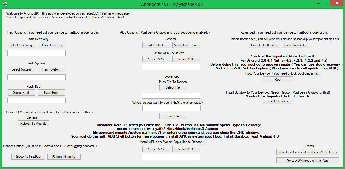 AndRootKit: Effettuare Flash, Installare APK, Bloccare e Sbloccare il Bootloader e tanto altro direttamente da Windows su dispositivi con ROOTProgrammi per effettuare le operazioni più difficili su An...