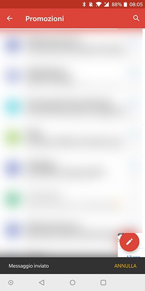 - cliccando sul pulsante Annulla sull'estrema destra della schermata potrai annullare l'invio della mail tramite Gmail per Android