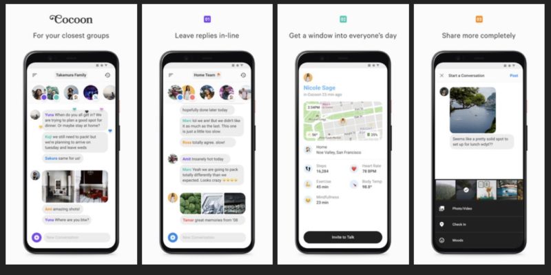 Cocoon è un'app particolare e interessante al tempo stesso. Si tratta di un programma di messaggistica disegnato appositamente per essere usato con piccoli gruppi di persone, amici o famiglia.