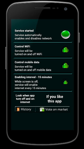 - When you turn on the screen - the application enables a mobile data / WiFi