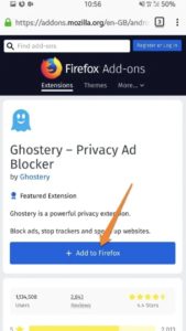 - Nella schermata di Ghostery, clicca su ‘+ Add to Firefox‘ per scaricare e installare l'estensione