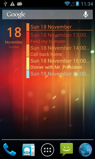 A clean and easy to use Calendar/Agenda Widget to show and to edit your events. It synchronizes with the default calendar and provides following;
