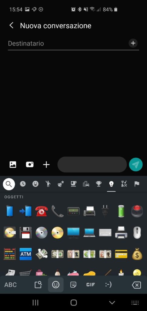- a questo punto non ti resta che aprire una qualsiasi chat, conversazione o email (o comunque un qualsiasi campo in cui compare la tastiera): in basso a sinistra vedrai una faccina a forma di emoji e, cliccandoci sopra, potrai inserire e usare tutte le classiche emoji di iPhone anche sul tuo smartphone Huawei