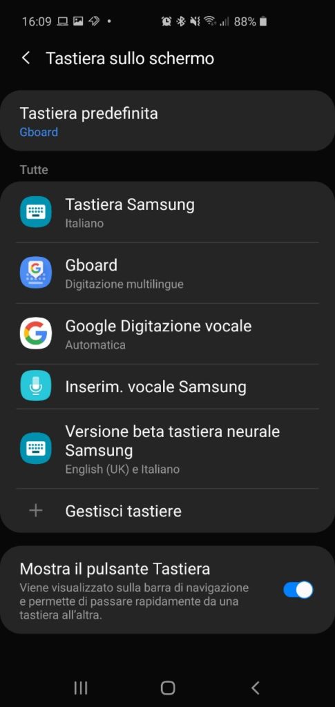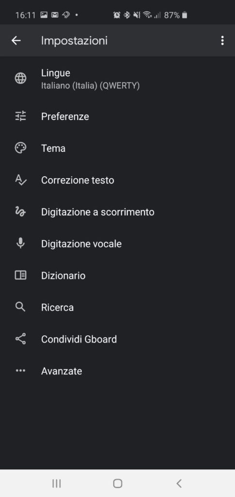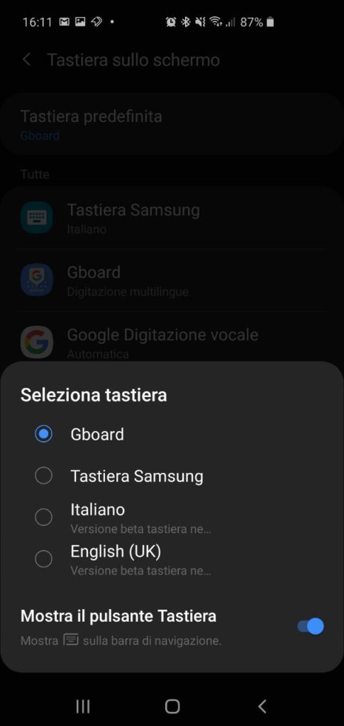 - tra le voci disponibili, clicca su Gboard (la tastiera di Google appunto)