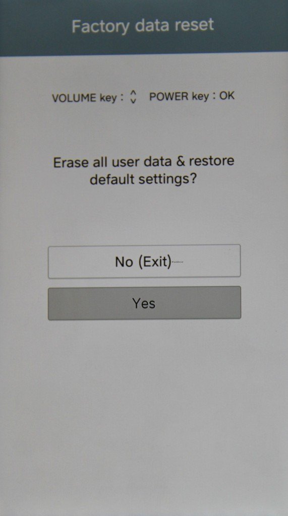 - Ora muoviti con il pulsante del volume giù sulla scritta Yes e poi confermate con il tasto Power.