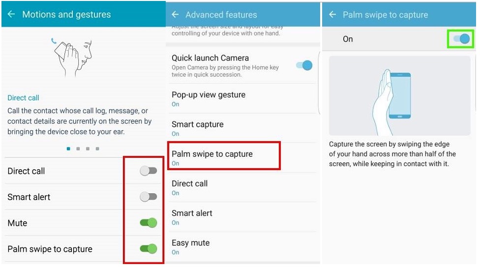 - Vai nelle Impostazioni di Sistema > Funzioni Avanzate > Movimenti e gesti > Acquisisci con trascinamento palmo