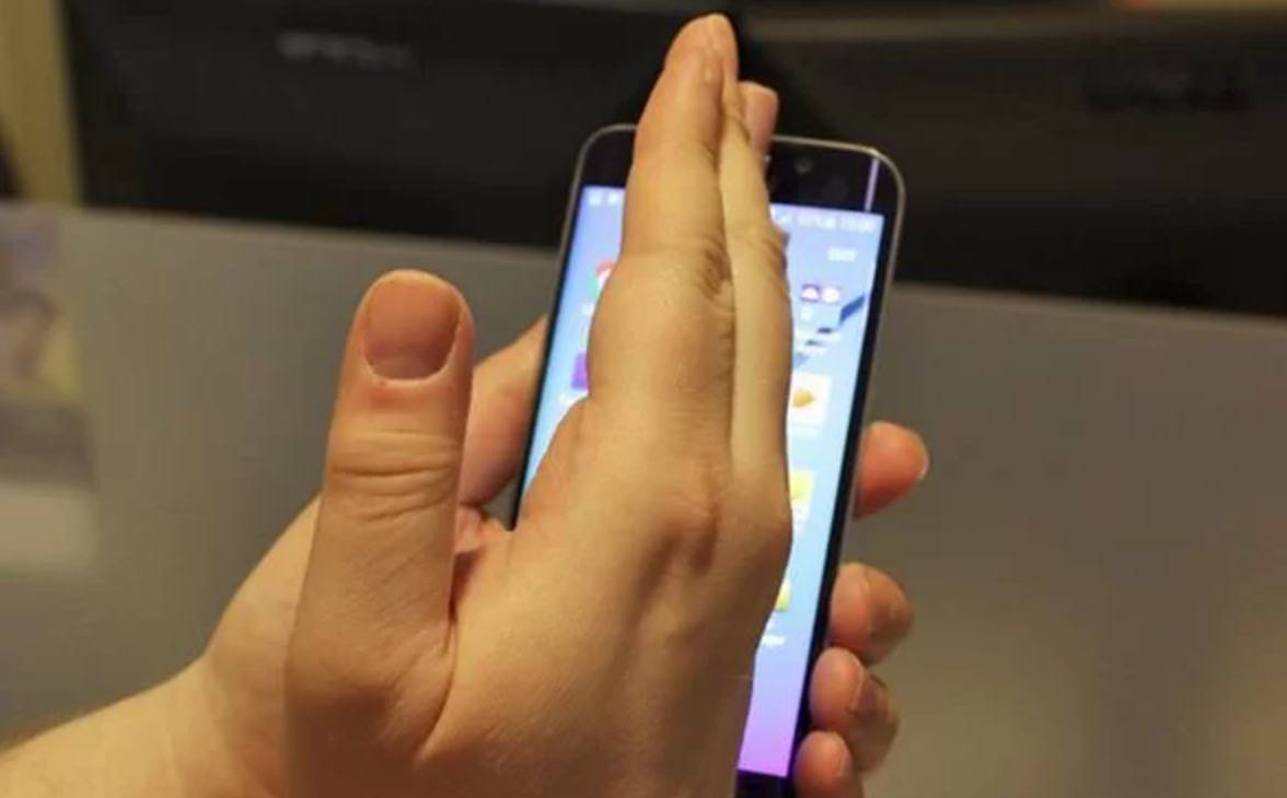 A questo punto posizionate il palmo dell'altra mano sullo schermo, tenendolo però a distanza di 1-2 centimetri dal display. Ora, anzichè tenere il palmo vicino allo schermo, girate la mano in modo da tenere solo il lato vicino al display. Guardate l'immagine seguente per capire meglio.