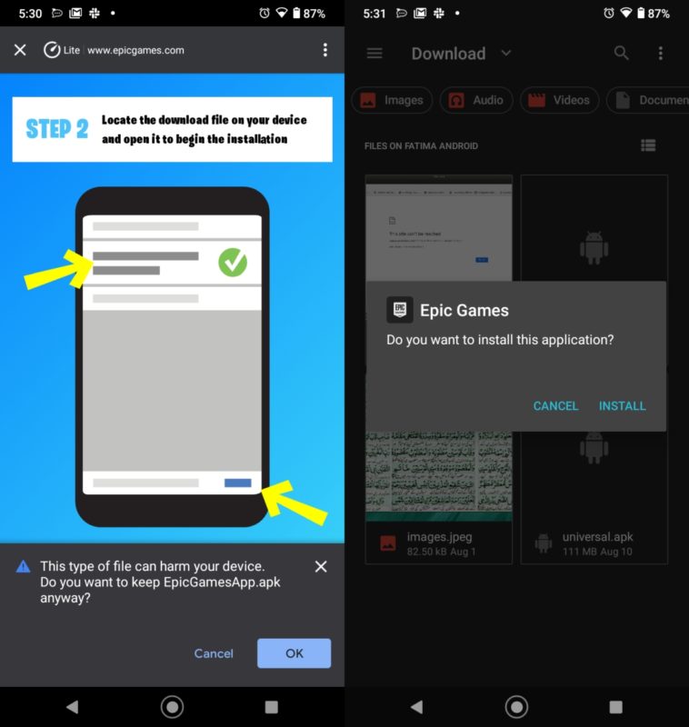 - Da qui devi scaricare il file APK di avvio di Epic Games