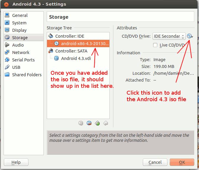 - Ora andate a selezionare l'immagine ISO di Android 4.3 precedentemente scaricata cliccando sull'icona della cartella