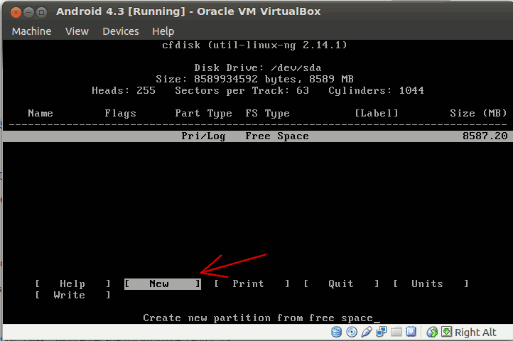 - Infine selezionare Write e digitare il comando yes per avviare la creazione vera e propria della partizione su cui verrà installato Android 4.3